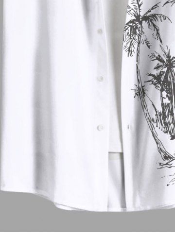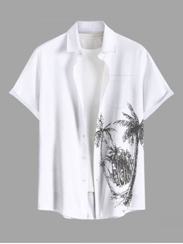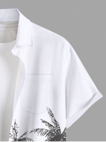 Plus Size Coconut Tree Seascape Print Buttons Pocket Hawaii Shirt For Men - White - Xl