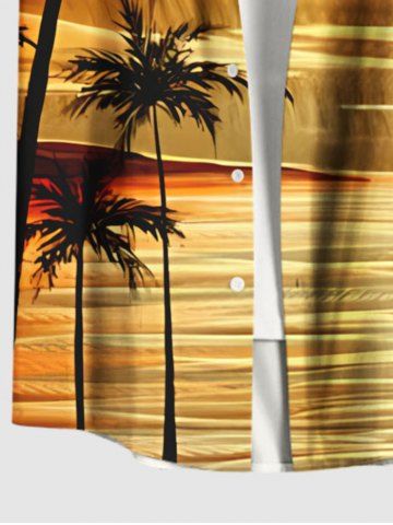 Plus Size Coconut Tree Seascape Print Buttons Pocket Hawaii Shirt For Men - Orange - 5xl