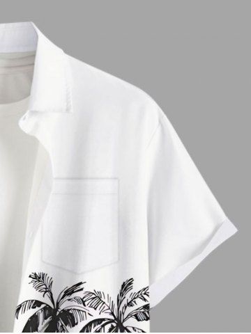 Plus Size Coconut Tree Seascape Print Buttons Pocket Hawaii Shirt For Men - White - Xl
