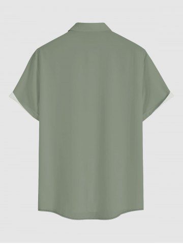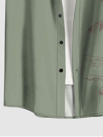 Plus Size Coconut Tree Seascape Print Buttons Pocket Hawaii Shirt For Men - Green - M