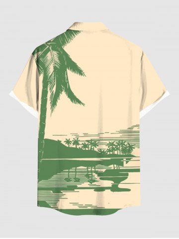 Plus Size Coconut Tree Seascape Reflection Print Buttons Pocket Hawaii Shirt For Men - Light Coffee - 2xl