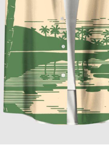 Plus Size Coconut Tree Seascape Reflection Print Buttons Pocket Hawaii Shirt For Men - Light Coffee - 3xl