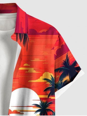 Short Sleeves Shirts > Plus Size Coconut Tree Seascape Sun Cloud Print Buttons Pocket Hawaii Shirt For Men