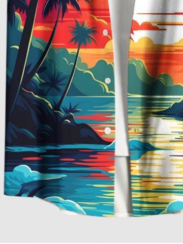 Short Sleeves Shirts > Plus Size Coconut Tree Seascape Sun Cloud Print Buttons Pocket Hawaii Shirt For Men