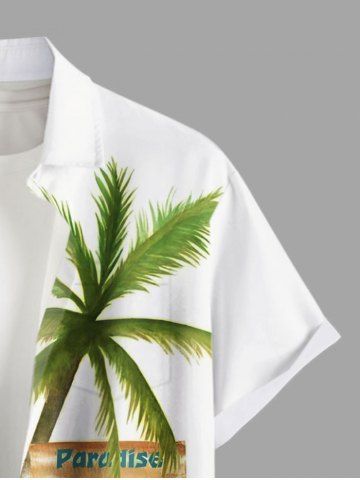 Plus Size Coconut Tree Signboard Print Hawaii Button Pocket Shirt For Men - White - M