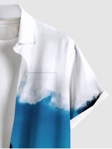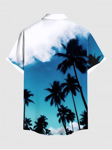 Short Sleeves Shirts > Plus Size Coconut Tree Sky Cloud Print Hawaii Button Pocket Shirt For Men