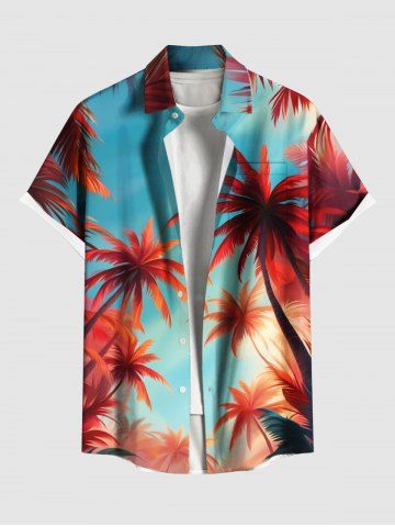 Short Sleeves Shirts > Plus Size Coconut Tree Sky Print Hawaii Button Pocket Shirt For Men
