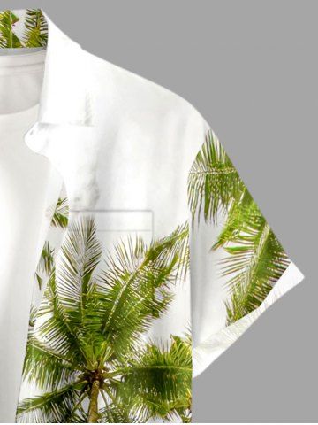 Plus Size Coconut Tree Sky Print Hawaii Button Pocket Shirt For Men - White - 5xl