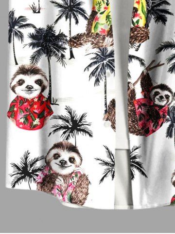 Plus Size Coconut Tree Sloth Print Buttons Pocket Hawaii Shirt For Men - White - 4xl