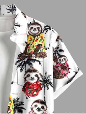 Plus Size Coconut Tree Sloth Print Buttons Pocket Hawaii Shirt For Men - White - 6xl