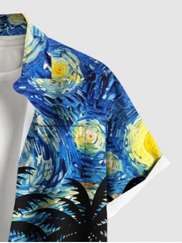 Plus Size Coconut Tree Spiral Painting Galaxy Print Hawaii Button Pocket Shirt For Men - Navy Blue - 3xl