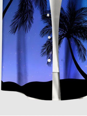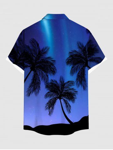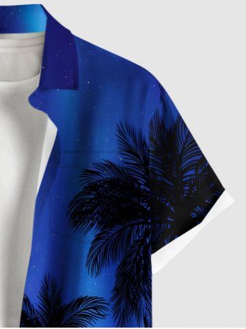 Plus Size Coconut Tree Star Glitter 3D Print Buttons Pocket Hawaii Shirt For Men - Blue - Xl