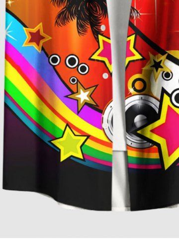 Plus Size Coconut Tree Star Music Tape Rainbow Glitter Sparkling Ombre Light Spot Print Hawaii Shirt For Men - Yellow - 3xl
