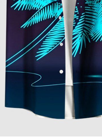Plus Size Coconut Tree Star Print Buttons Pocket Hawaii Shirt For Men - Deep Blue - S