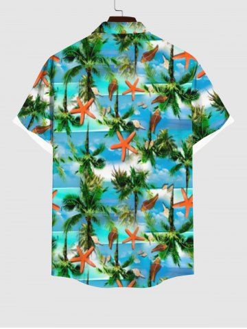 Short Sleeves Shirts > Plus Size Coconut Tree Starfish Sea Boat Print Buttons Pocket Hawaii Shirt For Men