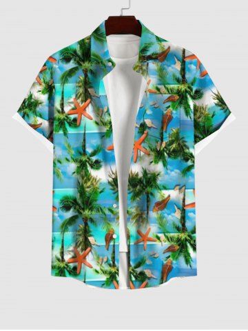 Short Sleeves Shirts > Plus Size Coconut Tree Starfish Sea Boat Print Buttons Pocket Hawaii Shirt For Men