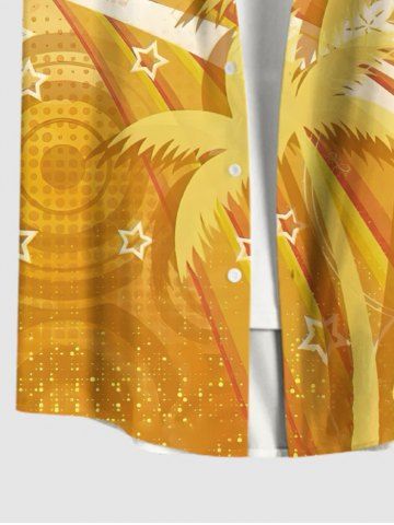 Plus Size Coconut Tree Stars Highway Print Hawaii Button Pocket Shirt For Men - Yellow - M
