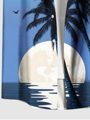 Plus Size Coconut Tree Sun Bird Print Buttons Pocket Hawaii Shirt For Men - Blue - 4xl