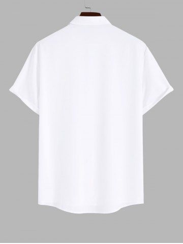 Plus Size Coconut Tree Sun Cloud Letters Print Buttons Pocket Hawaii Shirt For Men - White - 3xl