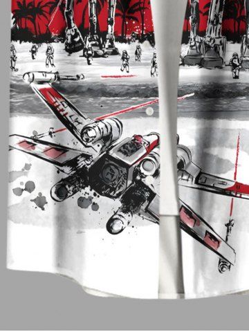 Plus Size Coconut Tree Sun Fighter Print Buttons Pocket Hawaii Shirt For Men - Red - 3xl
