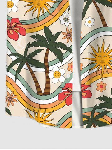 Plus Size Coconut Tree Sun Floral Rainbow Print Hawaii Button Pocket Shirt For Men - Multi-a - 2xl