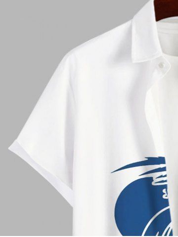 Plus Size Coconut Tree Sun Mountain Colorblock Print Buttons Pocket Hawaii Shirt For Men - White - 4xl