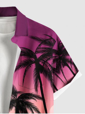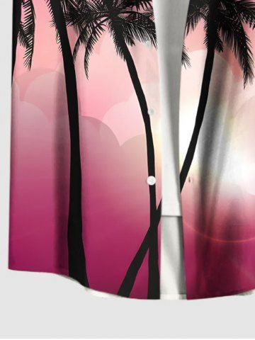 Plus Size Coconut Tree Sun Ombre Light Beam 3D Print Buttons Pocket Hawaii Shirt For Men - Light Pink - 6xl