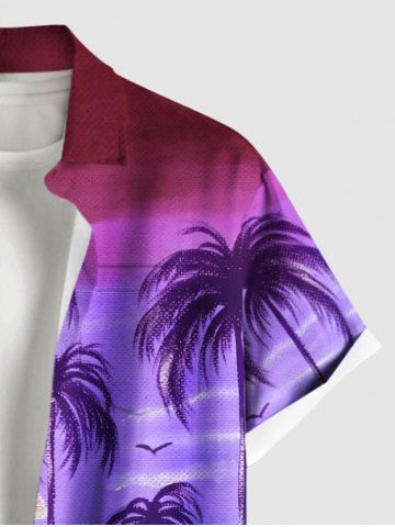 Plus Size Coconut Tree Sun Ombre Print Buttons Pocket Hawaii Shirt For Men - Purple - M