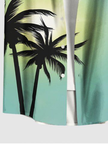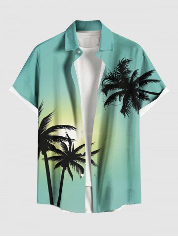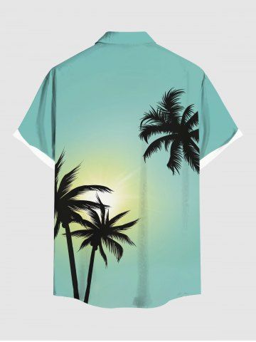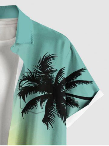 Plus Size Coconut Tree Sun Ombre Print Buttons Pocket Hawaii Shirt For Men - Light Green - S