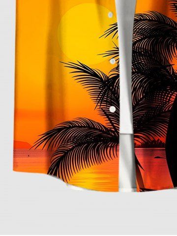 Plus Size Coconut Tree Sun Ombre Print Buttons Pocket Hawaii Shirt For Men - Orange - S