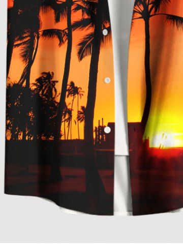 Plus Size Coconut Tree Sun Ombre Print Buttons Pocket Hawaii Shirt For Men - Orange - S