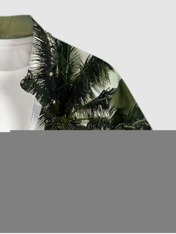 Plus Size Coconut Tree Sun Ombre Print Buttons Pocket Hawaii Shirt For Men - Plant Green - L