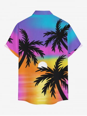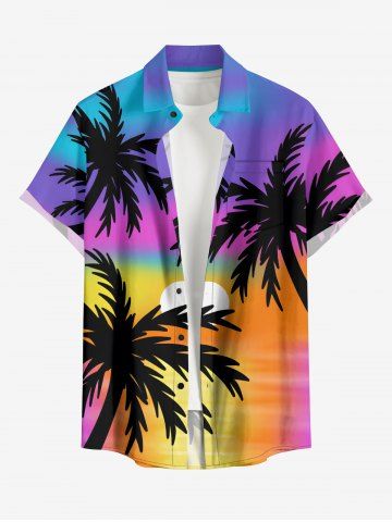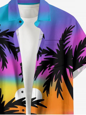 Plus Size Coconut Tree Sun Ombre Print Buttons Pocket Hawaii Shirt For Men - Multi-a - L