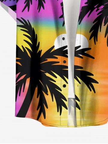 Plus Size Coconut Tree Sun Ombre Print Buttons Pocket Hawaii Shirt For Men - Multi-a - 5xl