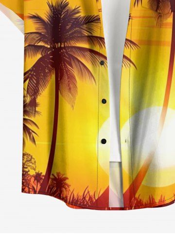 Plus Size Coconut Tree Sun Ombre Print Buttons Pocket Hawaii Shirt For Men - Golden Brown - 3xl