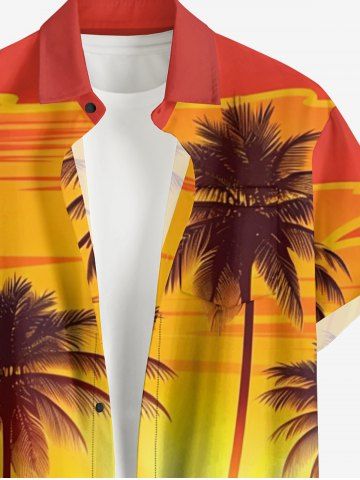 Short Sleeves Shirts > Plus Size Coconut Tree Sun Ombre Print Buttons Pocket Hawaii Shirt For Men