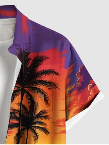 Short Sleeves Shirts > Plus Size Coconut Tree Sun Seascape Colorful Cloud Print Buttons Pocket Hawaii Shirt For Men
