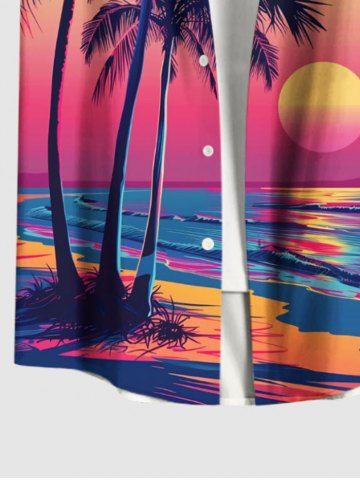 Plus Size Coconut Tree Sun Seascape Ombre Print Buttons Pocket Hawaii Shirt For Men - Multi-a - Xl