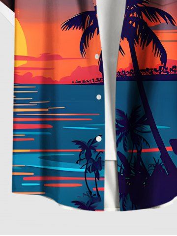 Short Sleeves Shirts > Plus Size Coconut Tree Sun Seascape Print Buttons Pocket Hawaii Shirt For Men