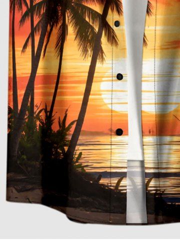 Short Sleeves Shirts > Plus Size Coconut Tree Sun Seascape Print Buttons Pocket Hawaii Shirt For Men