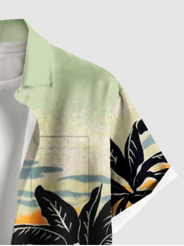 Plus Size Coconut Tree Sun Sky Ombre Print Buttons Pocket Hawaii Shirt For Men - Light Green - 6xl