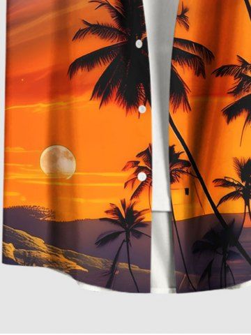 Plus Size Coconut Tree Sunset Galaxy Print Hawaii Button Pocket Shirt For Men - Orange - M