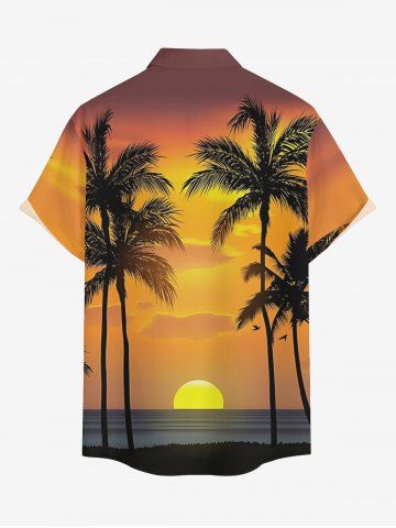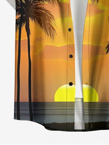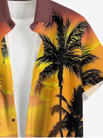 Plus Size Coconut Tree Sunset Print Buttons Pocket Hawaii Shirt For Men - Dark Orange - M