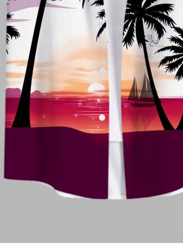 Short Sleeves Shirts > Plus Size Coconut Tree Sunset Sailboat Colorblock Print Buttons Pocket Hawaii Shirt For Men