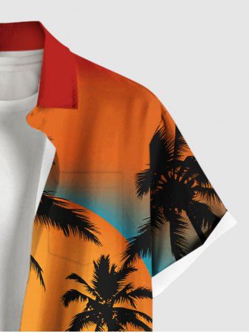 Plus Size Coconut Tree Sunset Sea Print Buttons Pocket Hawaii Shirt For Men - Orange - L