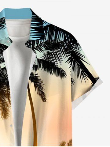 Short Sleeves Shirts > Plus Size Coconut Tree Sunshine Ombre Print Buttons Pocket Hawaii Shirt For Men