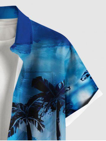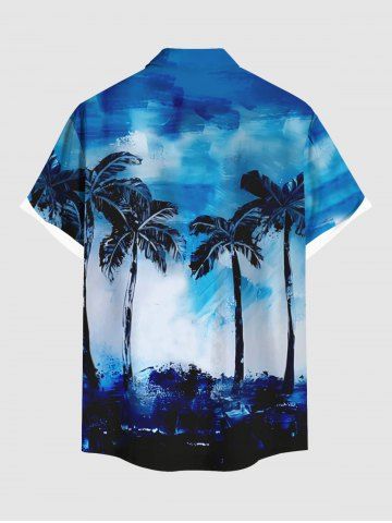 Plus Size Coconut Tree Tie Dye Oil Painting Print Buttons Pocket Hawaii Shirt For Men - Blue - 6xl