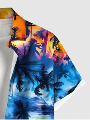 Short Sleeves Shirts > Plus Size Coconut Tree Tie Dye Ombre Print Hawaii Button Pocket Shirt For Men