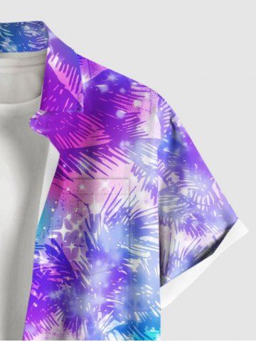 Plus Size Coconut Tree Tie Dye Ombre Stars Galaxy Print Hawaii Button Pocket Shirt For Men - Purple - M