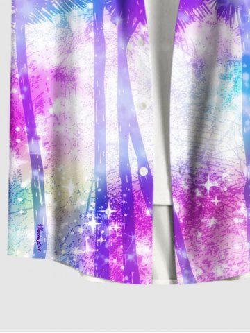 Plus Size Coconut Tree Tie Dye Ombre Stars Galaxy Print Hawaii Button Pocket Shirt For Men - Purple - 4xl